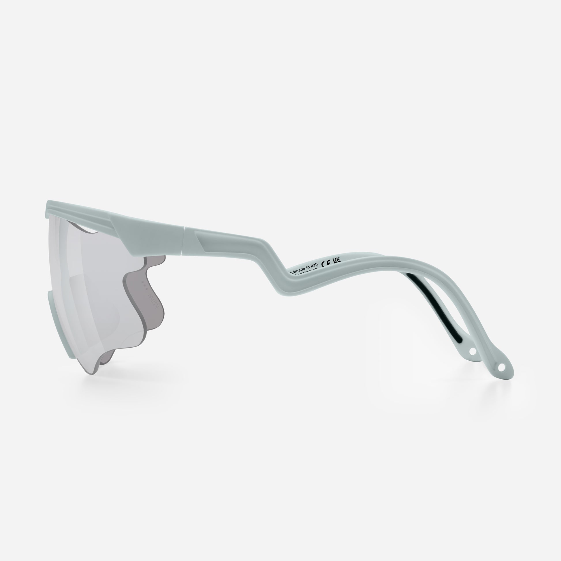 A armação é feita de Tr90, um composto de nylon e fibra de carbono.